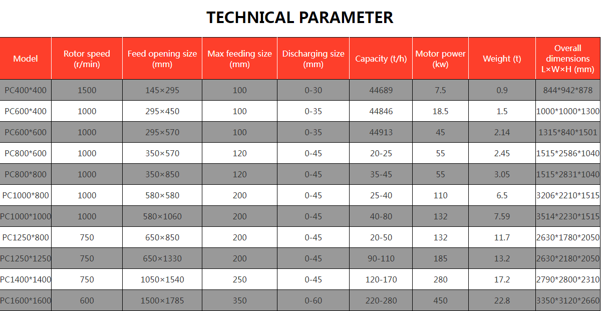 Motor power:7.5-450kw Discharging size:0-60mm Capacity:5-280t/h