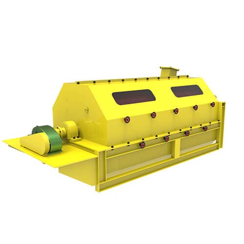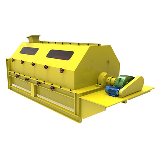 Rotary screen is consisting of five parts: drum, frame, hopper, reducer and motor. After the material goes into the drum, it is screened along with the rotation of drum. At same time, the larger size materials flow forward along the direction of slope and be separated by the screen with different numbers of meshes. The different materials fall into different hoppers and then are sent to different finished product stacks by manpower or belt conveyor.