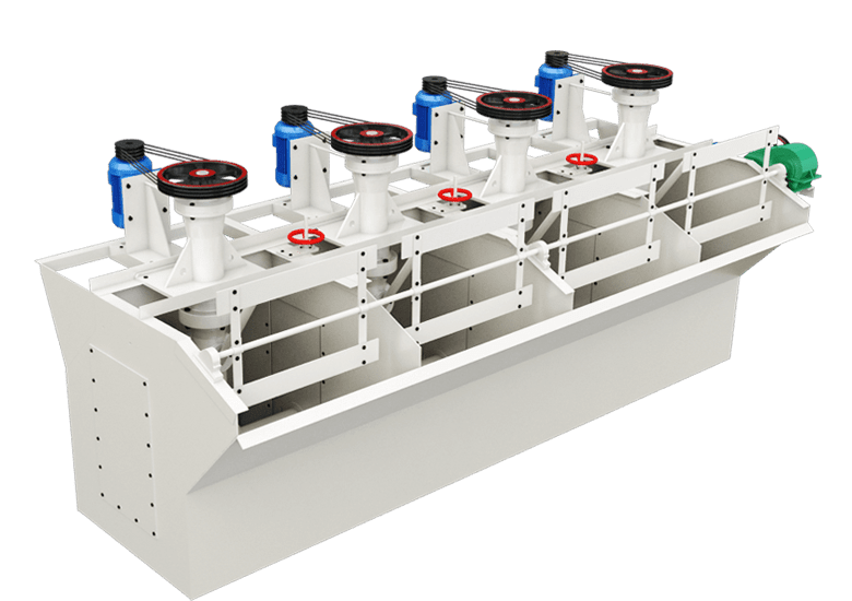 The ground ore is mixed with water and necessary reagents during or after grinding in a mixing tank to form a slurry. This slurry is then injected into a stirring slurry tank, and air is introduced into the slurry to create a large number of bubbles. Some mineral particles that are not easily wetted by water, generally referred to as hydrophobic particles, attach to the bubbles and rise together with them to the surface of the slurry, forming a mineralized bubble layer. Meanwhile, other mineral particles that are easily wetted by water, generally referred to as hydrophilic particles, do not attach to the bubbles and remain in the slurry. The mineralized bubbles containing specific minerals are then collected and removed, thereby achieving the purpose of mineral separation.